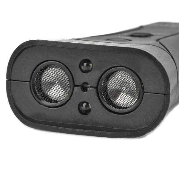 Високоефективний прилад для боротьби з агресивними собаками! Потужний спрямований ультразвук відлякає собаку і змусить її покинути захоплену територію, а лазерний промінь і два яскравих поперемінно миготливих світлодіода створять додатковий відлякуючий ефект.